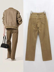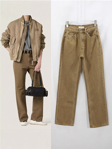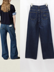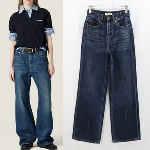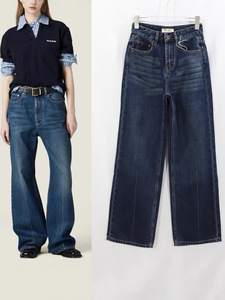 MIU直筒牛仔裤女款深蓝色高腰宽松阔腿长裤女2025早秋款工厂直销