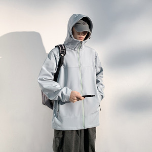 户外软壳加绒冲锋衣男女款三系潮流户外运动外套防风防水连帽上衣