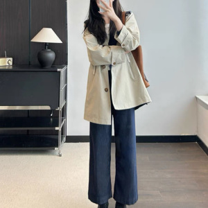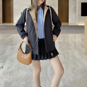MM家25早秋新款时尚通勤百搭松弛感双面穿撞色连帽中长款风衣外套