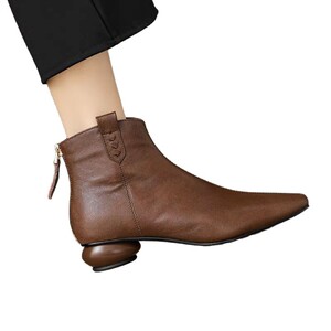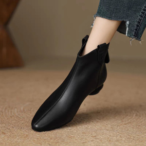 软皮尖头时装靴女2025年秋冬季新款粗跟真皮女靴法式复古短靴单靴