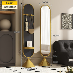 可旋转穿衣镜落地镜家用女生卧室试衣镜衣帽架一体全身镜玄关镜子