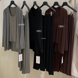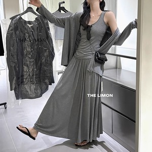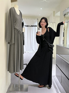 THE LIMON柠檬绿茶2025秋季套装背心+长袖开衫+宽松裙子三件套女
