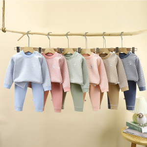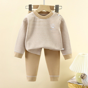 儿童睡衣套装2025新款德绒条条秋衣秋裤男女童长袖长裤保暖家居服