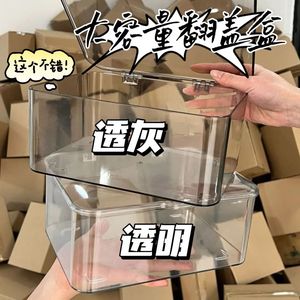 翻盖式桌面收纳盒透明亚克力防尘整理盒卧室宿舍办公室带盖杂物筐