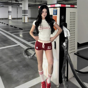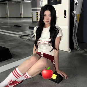【40支仿棉】字母印花修身正肩短款T恤女短袖上衣灰色美式