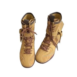 牛皮版~平底内增高马丁靴女2025新款拳击靴磨砂皮系带短靴德训靴
