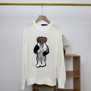 高品质/可扫码镂空钩花小熊25年秋冬纯棉重工刺绣女款圆领毛衣