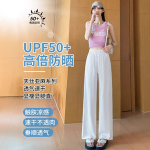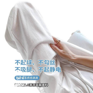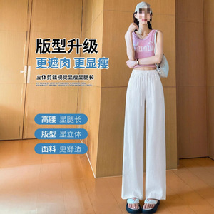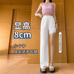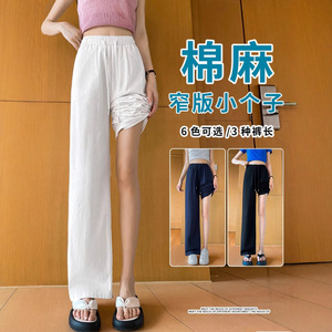 白色棉麻阔腿裤女小个子150夏季薄款高腰垂感感窄版直筒裤子