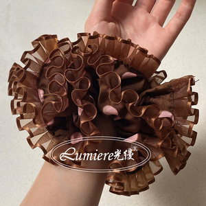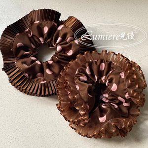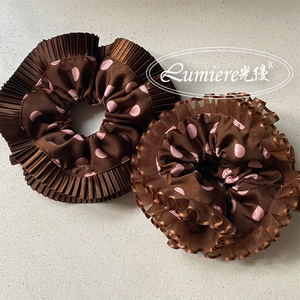 韩国东大门新款可露丽色粉棕波点大肠发圈气质巧克力色风琴头花女