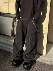 MIJKO男装女多口袋可抽绳束脚裤脚休闲裤 水洗做旧Vintage工装裤