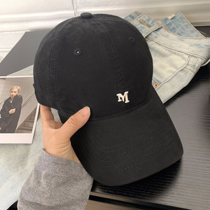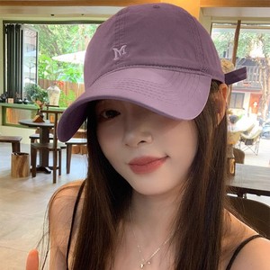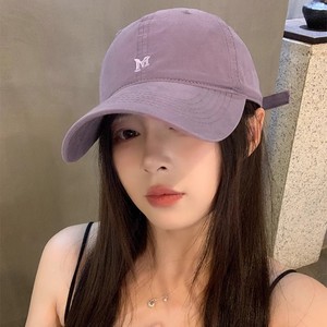 日本字母刺绣紫色棒球帽女高品质简约百搭帽子宽帽檐显脸小鸭舌帽