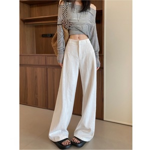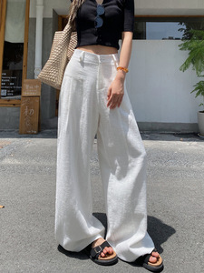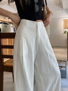 亚麻宽松阔腿裤女2025秋季新款薄麻料高腰宽松显瘦垂感休闲直筒裤