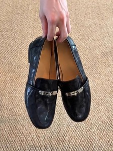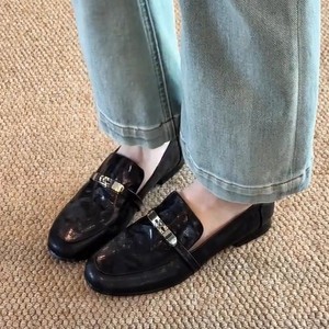 水洗牛皮~真皮复古黑色英伦金属扣一脚蹬乐福鞋女百搭小皮鞋单鞋