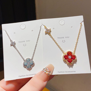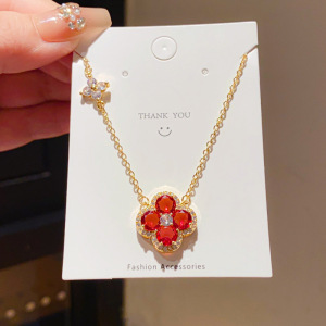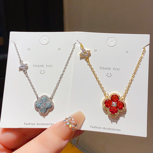 法式轻奢锆石幸运小草花朵锁骨链复古小众简约时尚通勤气质项链女
