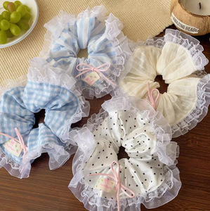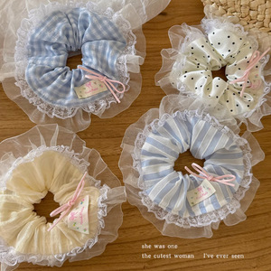 甜美蕾丝花边波点蝴蝶结大肠发圈女2025新款大号扎头发绳头绳发饰