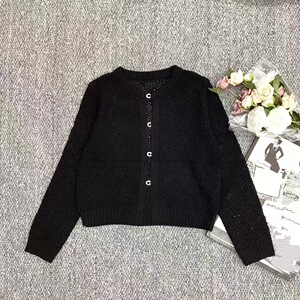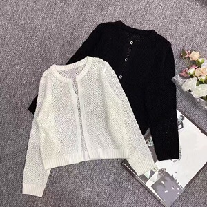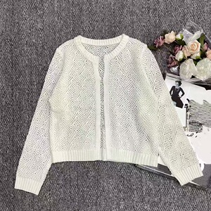 25早秋新品小香水钻装饰纽扣针织开衫女薄款修身气质长袖镂空上衣