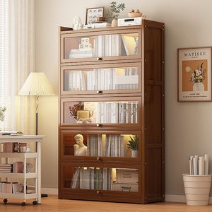 书架置物架落地简易家用书柜带门防尘储物柜客厅置物柜靠墙收纳柜