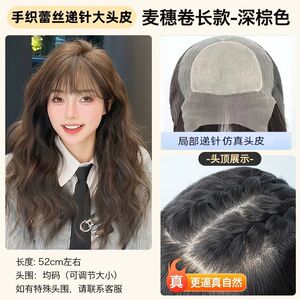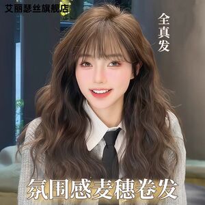 蕾丝递针头套全真发女长卷发全真人发蓬松无痕高档中长波浪卷假发