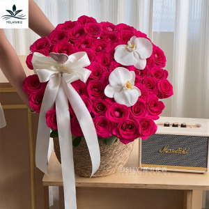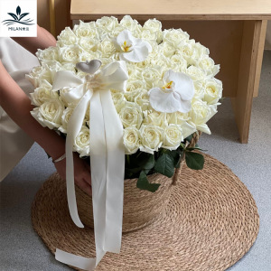 巨型仙子花篮圆形抱抱桶花盒 玫瑰花束插花蓝手工草编篮子diy礼物