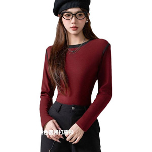 2025秋冬新款拼色圆领长袖磨毛打底衫女内搭外穿时髦亲肤软糯长袖