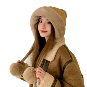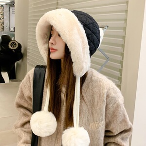 帽子女2025新款冬季羽绒棉毛球防风防寒保暖帽骑行护耳毛绒雷锋帽