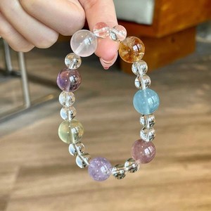 天然多宝水晶手链海蓝宝多巴胺彩色水晶串珠清透白水晶紫水晶手串