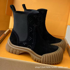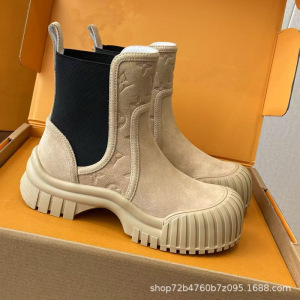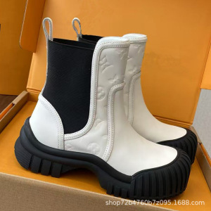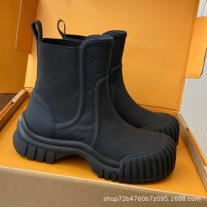 25新款厚底切尔西靴女秋冬靴子系带小牛皮套筒短靴撞色大头马丁靴