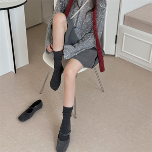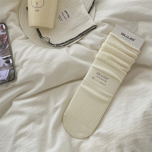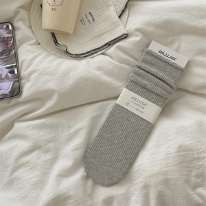 秋冬直板袜子女纯色薄款中筒袜无骨韩版东大门休闲百搭长筒堆堆袜