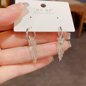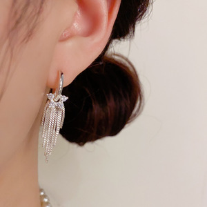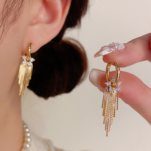 跨境时尚复古镶钻花瓣金属流苏耳扣女个性轻奢独特设计感耳坠批发