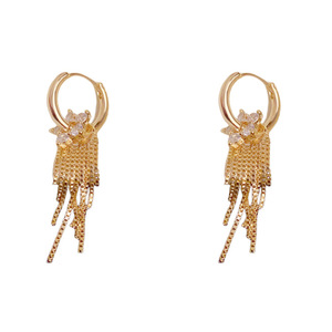 金色-镶钻花瓣金属流苏耳扣(加厚真金电镀)