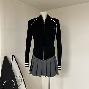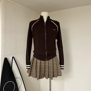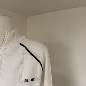 2025早秋新款学院风字母提花撞色立领长袖针织开衫女拉链镂空外套
