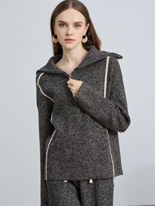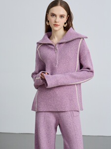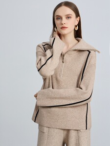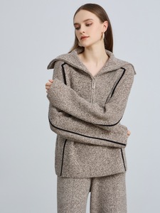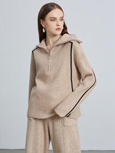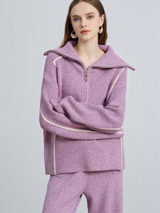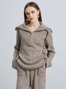 欧洲站女士针织衫套头25年羊毛系列下花线半拉链气质女时尚百搭