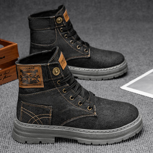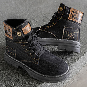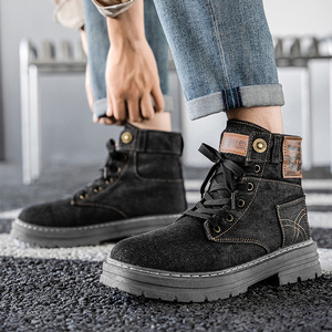 柔软水洗牛仔布鞋男士秋季韩版休闲高帮板鞋时尚青年工装鞋大码48