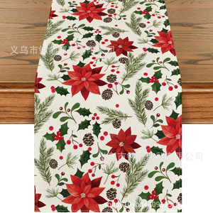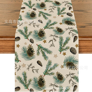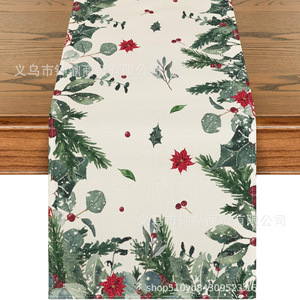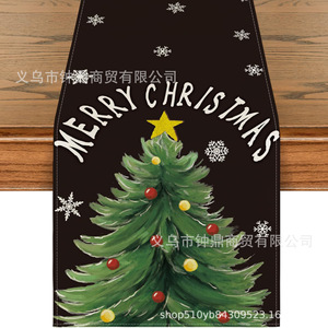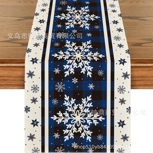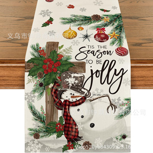亚马逊爆款圣诞节桌旗雪人雪花图案亚麻材质冬季圣诞节装饰桌布