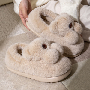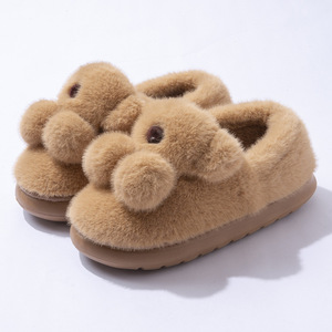新款包跟室内家居厚底防滑可爱毛绒棉鞋小熊毛毛棉拖童鞋秋冬