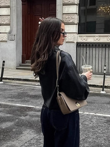 欧美高级感翻领酷飒皮衣哑光机车风秋冬新款保暖宽松显瘦短款外套