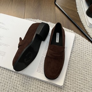 2025年复古绒面乐福鞋子女春秋新款法式粗跟平底单鞋一脚蹬小皮鞋