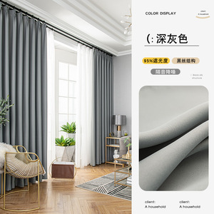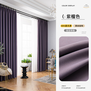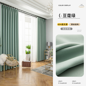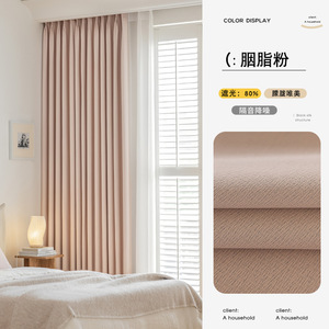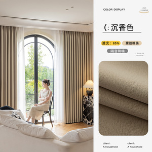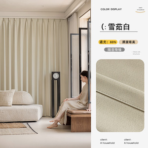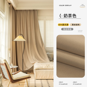 奶油色遮光窗帘新款加厚卧室客厅挂钩式轻奢现代简约飘窗