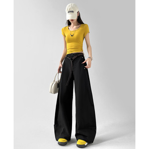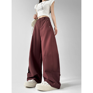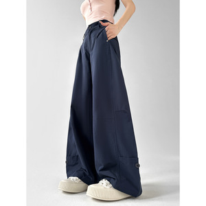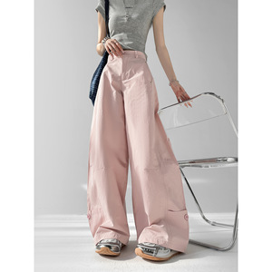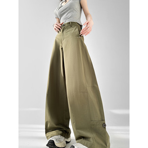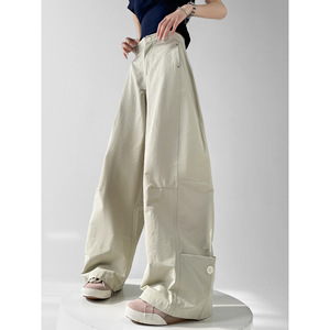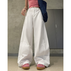 白色美式工装裤女2025夏季新款高腰显瘦弯刀裤宽松薄款休闲阔腿裤