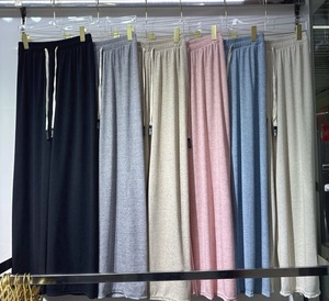 炫彩条宽松显瘦百搭阔腿裤秋冬款松紧腰系带大码女裤时尚简约