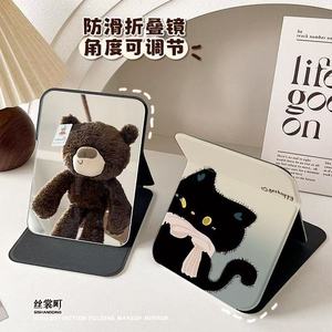 可爱猫咪ins化妆镜子折叠桌面台式梳妆镜家用化妆镜便携式补妆镜