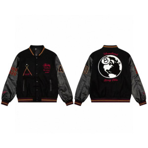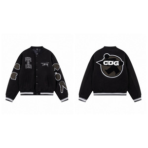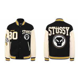 高品质跨境Stu斯图字母宽松80贴标刺绣拼接加棉夹克棒球服外套男