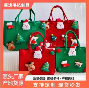 卡通圣诞毛毡包毛毡手提袋平安夜苹果袋圣诞树糖果包毛毡礼品袋