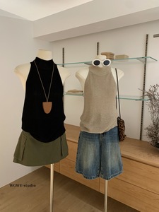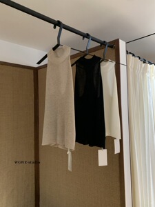 【WGWE】6740法式纯欲风肩简约挂脖针织松弛感挖肩背心吊带上衣