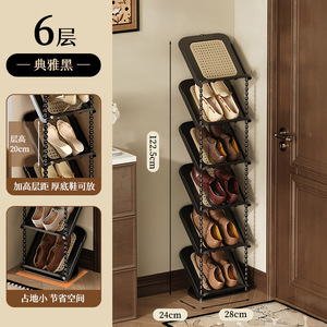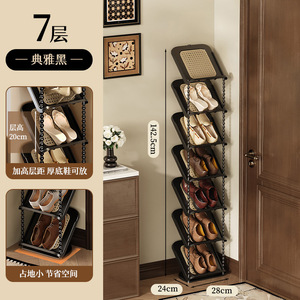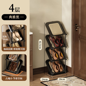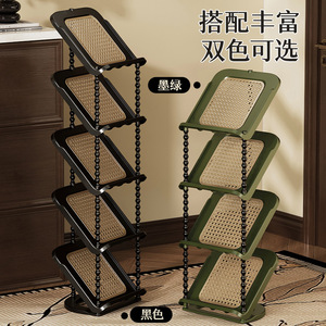 门口藤编倾斜鞋架多层家用鞋架子门口多层中古风简易鞋架宿舍