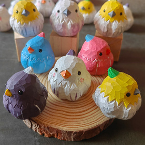 蒜鸟可爱纯手工实木雕刻木雕小鸟工艺品办公室客厅桌面摆件小礼物