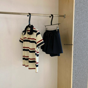 【WGWE】6551miu系两件套穿搭彩色条纹polo短袖T恤+半身裙套装