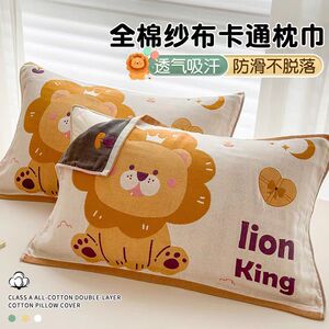 A类儿童枕巾纯棉一对装全棉纱布成人头巾防头油可机洗52x78枕头垫
