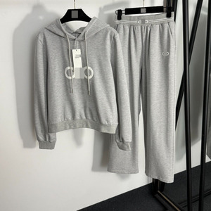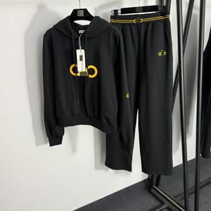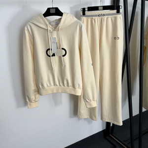 新款运动套装胸前logo字母胶印长袖连帽套头卫衣+松紧腰休闲长裤