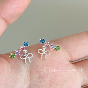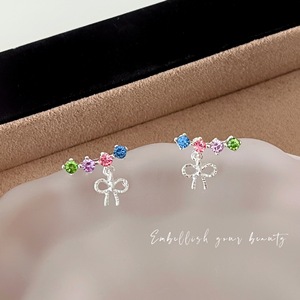 蝴蝶结彩色锆石耳钉女甜美气质百搭高级感耳环小众ins少女心耳饰